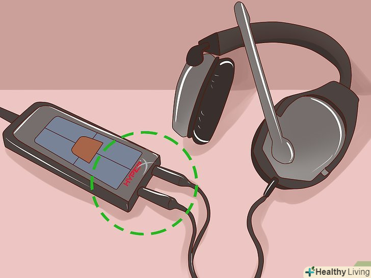 Підключіть гарнітуру до пульта.пульт являє собою невелику коробочку з регулятором гучності навушників і мікрофона, а також роз'ємом для мікрофона. Вставте кабель від навушників у відповідний порт на пульті.[1]- Якщо до гарнітури підключений тільки один кабель, вставте його в роз'єм 3,5 мм на пульті.