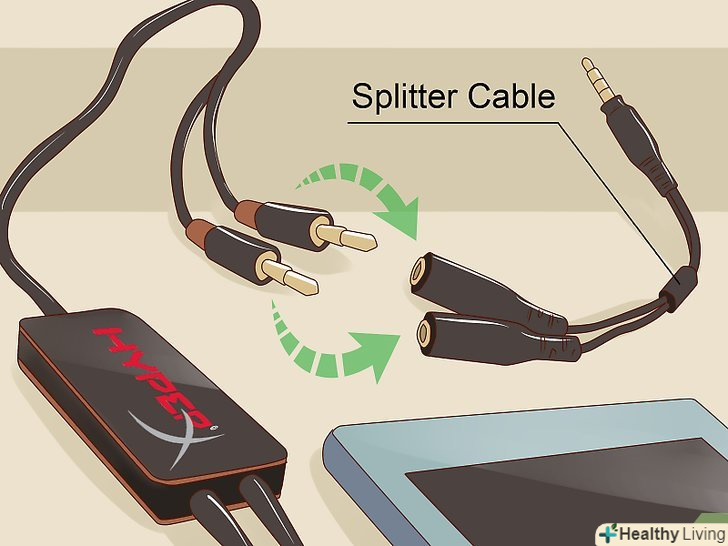 Підключіть пульт до розгалужувача.Розгалужувач має штекер 3,5 мм на одній стороні і два роз'єми 3,5 мм — на іншій. Вставте два кабелі від пульта у відповідні роз'єми на розгалужувачі. Це необхідно, щоб перетворити два сигнали в один.
