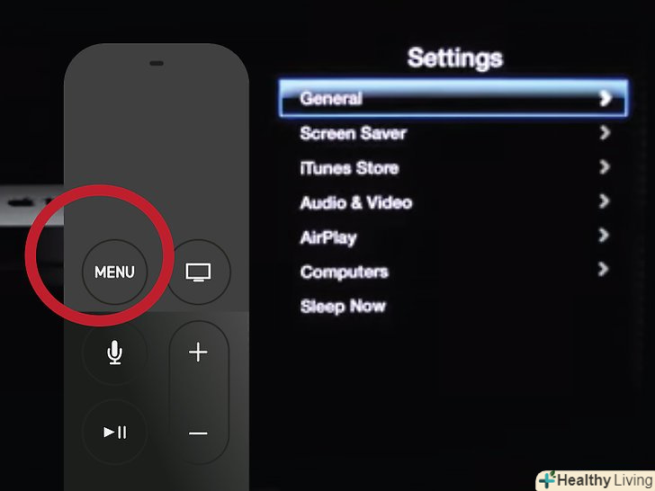 Запустіть програму " Settings "(Налаштування) на Apple TV. щоб переміститися назад, натискайте кнопку «Menu» (Меню) на пульті дистанційного керування.