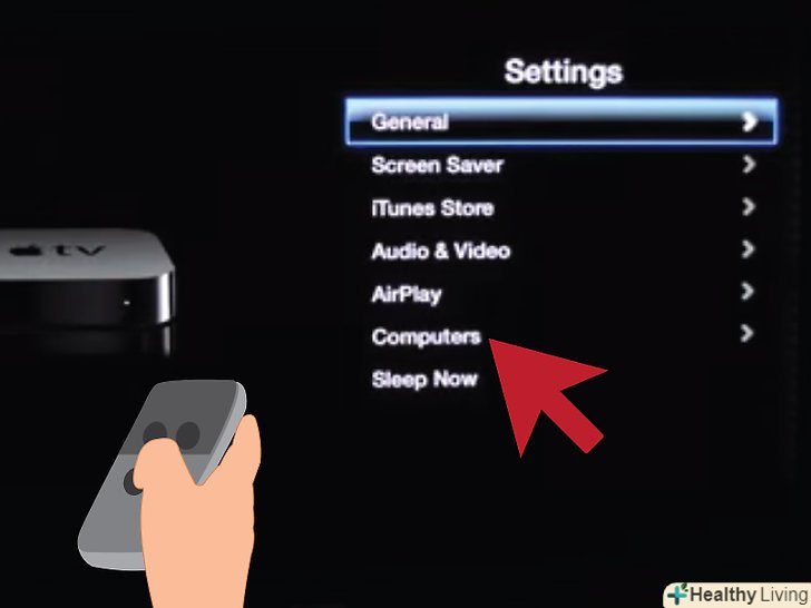 Виберіть " Computers "(Комп'ютери) в меню "Settings".Тепер виберіть "Turn On Home Sharing Option" (включити домашню колекцію), а потім виберіть той же Apple ID, за допомогою якого ви авторизувалися в iTunes. Введіть інший Apple ID, якщо ви налаштували функцію "домашня колекція" з-під іншого облікового запису.