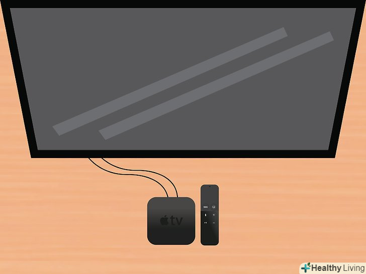 Підготуйте все необхідне.у комплекті з Apple TV поставляються кабель живлення і пульт дистанційного керування. Apple TV підключається тільки до HD-телевізора, а для цього потрібен кабель HDMI. Цей кабель не входить в комплект поставки Apple TV, але його можна купити в магазині електроніки або в Інтернеті за низькою ціною. Майте на увазі, що між кабелем за 700 рублів і кабелем за 6000 рублів немає особливої різниці. Також Apple TV потрібно підключити до бездротової мережі або скористатися кабелем Ethernet.- Apple TV першого покоління можна було підключити за допомогою компонентних (п'ятиконтактних) кабелів, але це вже неможливо з новими моделями.[1]