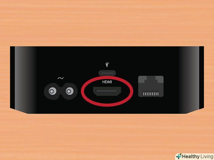 Підключіть Apple TV до ресивера або до телевізора через HDMI-роз'єм.такі роз'єми знаходяться на задній або бічній панелі телевізора або на задній панелі ресивера. Як правило, на телевізорі є один або кілька портів HDMI. На деяких старих HD-телевізорах HDMI-роз'ємів немає.- Запам'ятайте мітку HDMI-роз'єму, до якого підключаєте Apple TV, щоб налаштувати телевізор на правильне джерело сигналу.