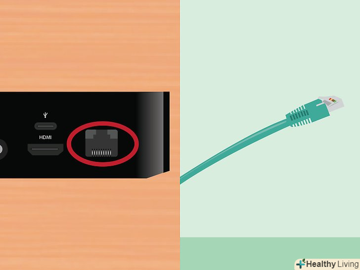 Підключіть кабель Ethernet (якщо необхідно).якщо ви підключаєтеся до мережі через Ethernet, підключіть кабель до задньої панелі Apple TV, а потім до маршрутизатора або мережевого комутатора. Якщо ви підключаєтеся до бездротової мережі, пропустіть цей крок.