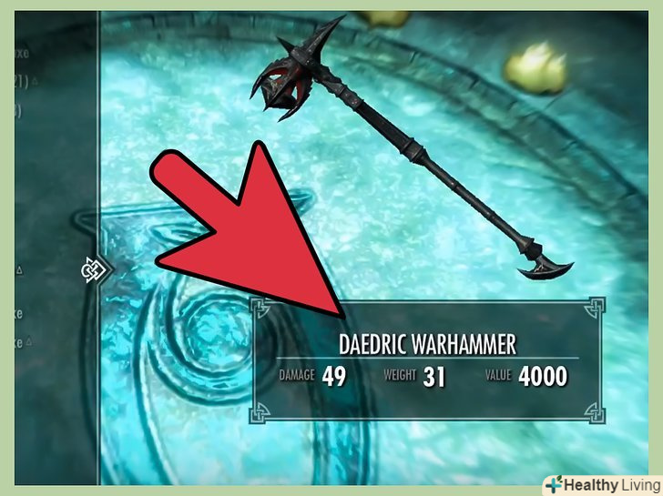 Створіть випадкове Зачароване даедричне спорядження.підготуйте заповнений великий камінь душ або краще (великий або чорний камінь душ), ебонітовий злиток і сіль порожнечі для броні або срібний одноручний/дворучний меч для зброї. Це найбільш ефективний спосіб створення даедріческого спорядження в кузні, якщо врахувати широке поширення потрібних компонентів, хоча у вас не буде контролю над тим, які чари будуть додані в процесі. Підсумкові чари можуть бути будь-якими, починаючи від нанесення бонусного шкоди від вогню/ морозу / блискавки і вигнання даедра (для зброї) і до підвищення навичок і збільшення наноситься шкоди певною зброєю (для броні).- Створення випадкового зачарованого даедріческого зброї теж має баги, так як виробляє тільки бойові молоти і бойові сокири. Цей баг був виправлений в неофіційному патчі для Skyrim версії 2.0.5 і вище для Skyrim на ПК.