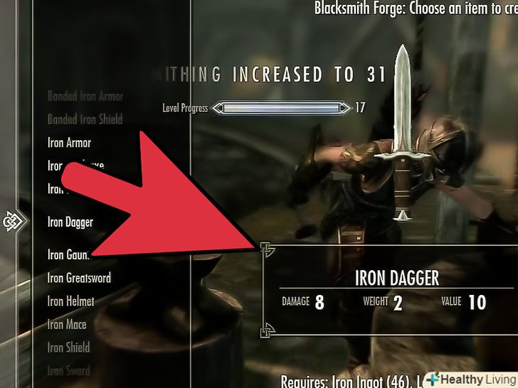- Один з патчів до гри вносить в неї наступну зміну: прокачування ковальської справи залежить від вартості предмета. Іншими словами, залізні кинджали самі по собі - це вже не найоптимальніший варіант. Що ж робити? Знайти броню з бонусом до ковальської справи, взяти знак воїна, спати в ліжку і, якщо вийде, отримати перк "давнє знання" за проходження стороннього квесту "з глибин". Початок квесту - від аргоніанки в доках Рифтена. Суть-доведеться побігати по двемерским руїнах (підбирайте метал по шляху, дуже стане в нагоді). Метал потім послужить сировиною для зброї і обладунків, що допоможе вам прокачати і ковальську справу, і красномовство.