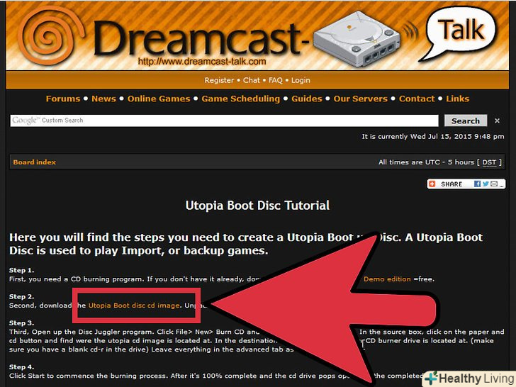 Скачайте образ завантажувального диска Utopia Boot Disc.це можна зробити на більшості ресурсів, присвячених іграм для Dreamcast. Як правило, на сайті, на якому ви завантажили резервну копію гри, ви знайдете образ завантажувального диска.