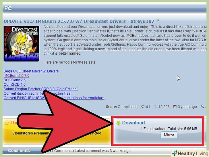 Скачайте і встановіть безкоштовну програму ImgBurn.під час установки цієї програми відмовтеся від установки супутніх програм, які вам не потрібні. За допомогою ImgBurn ви запросто запишіть гри для Dreamcast на чисті диски (але для початку необхідно встановити відповідні драйвери; про це в наступному кроці).- ImgBurn можна завантажити на сайтіimgburn.com.