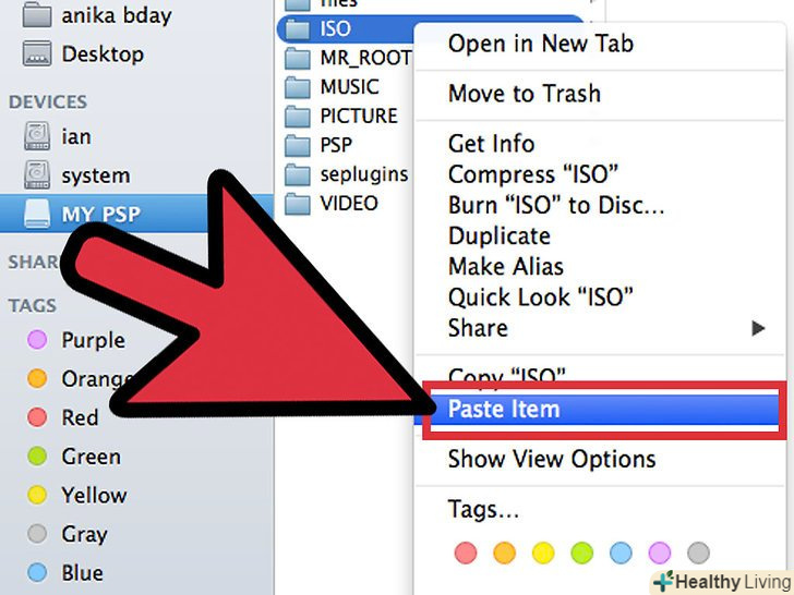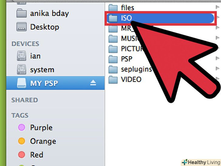 - Перейдіть в папку "Memory Stick «і двічі клацніть по підпапці»ISO". Якщо ви не бачите папку «ISO», натисніть Ctrl+⇧ Shift+N (Windows) або ⇧ Shift+⌘ Cmd+N (Mac), щоб створити її. Введіть ім'я папки великими літерами.