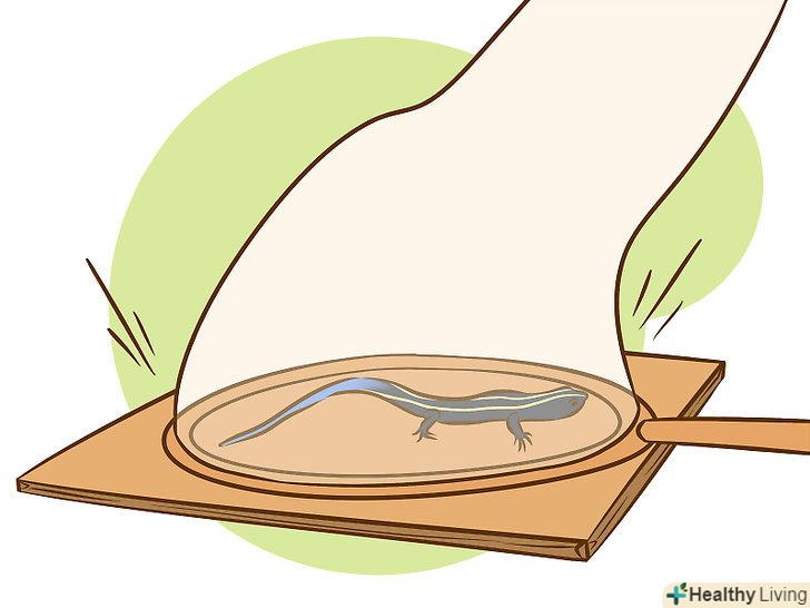 Перемістіть сцинка в його тимчасовий будинок. після упіймання ящірки, ви можете перемістити її в тимчасовий притулок, яке ви самі підготували.- Якщо сцинк попався в мишоловку або саморобну пастку, ви можете просто дати йому повзати там як в його новому будиночку.