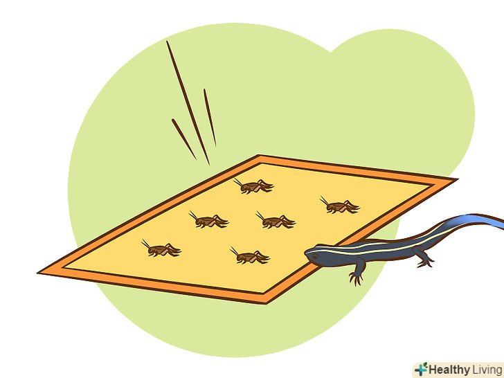 Заманити його в пастку. якщо ви вибрали клейову пастку, прикріпіть кілька цвіркунів на клей. Якщо ви вибрали мишоловку, вам знадобляться борошняні хрущаки або мертві цвіркуни в якості приманки. Якщо ви використовуєте саморобні пастки, то рекомендується накрити сачок (якщо він легкий) поліетиленовою плівкою, щоб сцинк не втік.