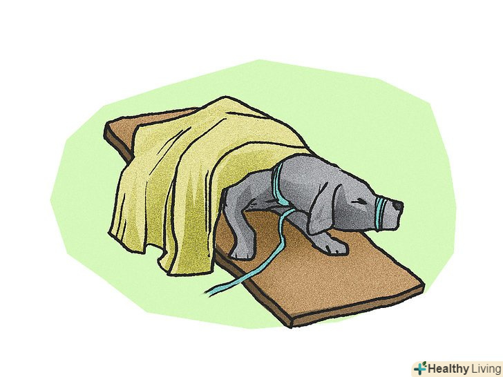 Дошка найкраще підійде для транспортування великих тварин, хоча може стати в нагоді і ковдру. покладіть дошку позаду тварини (або постеліть ковдру) і перекотіть або перенесіть тварину на цю дошку (ковдру). Накрийте його рушником і перенесіть до автомобіля. Якщо тварина брикається і намагається вирватися, постарайтеся сильніше обернути його в ковдру, щоб тварина не травмувало себе.