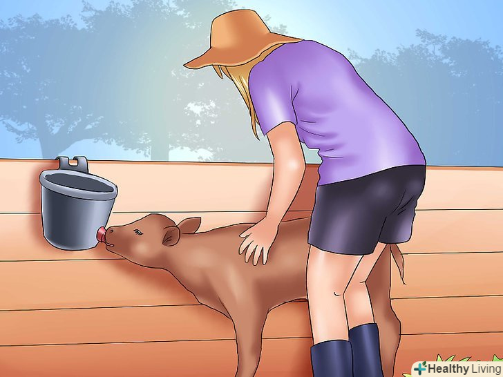 Годуйте теляти за допомогою пляшки або відра кожні 2-3 години, поки йому не буде кілька днів від народження. у цей період можна поступово замінювати молозиво на молоко. Після заміни можна буде годувати теляти 3 рази на день: вранці, вдень і ввечері. Переконайтеся, що ви даєте молоко, Рівне 10% маси теляти в день.- Коли теля стає старше, кількість годувань в день зменшується. Коли йому буде Місяць, годувати необхідно 2 рази в день, а коли йому буде більше 2х місяців – один раз. Теля віднімають від пляшки, коли йому виповнюється 3-4 місяці.
