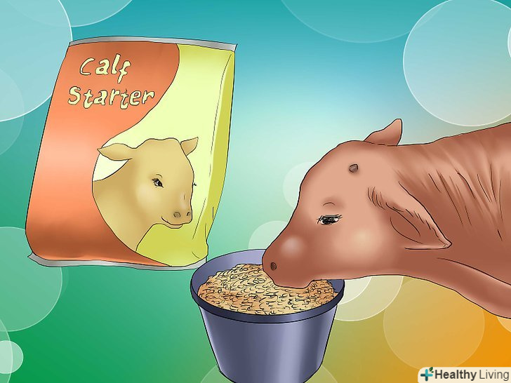 Годуйте теляти тільки високоякісними кормами. спеціальний корм для молодих телят можна придбати в магазині кормів. Такі корми допоможуть теляті рости здоровим. Вони містять білок, кальцій, фосфор та інші важливі поживні речовини, необхідні для росту.- Теляті також необхідно високоякісне сіно. Перевірте сіно. Дуже часто зовні хороше всередині є жахливим. Воно повинно складатися на 60% з бобових (люцерна або конюшина) і 40% трави.