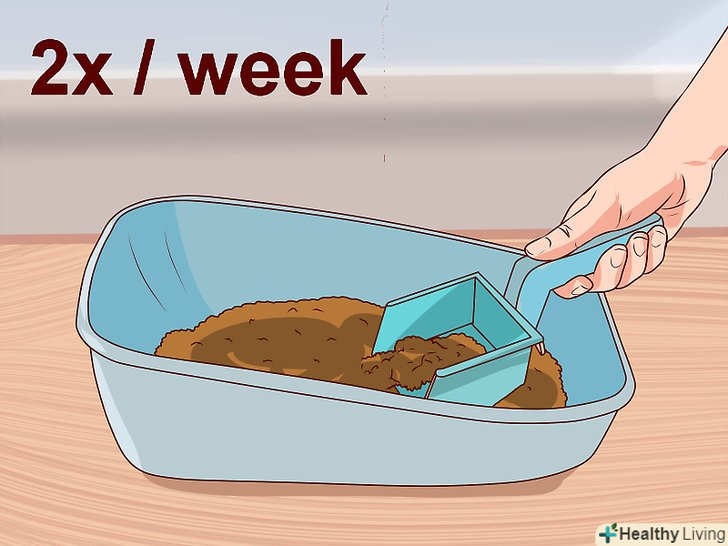 Мийте лоток двічі на тиждень. прибирати випорожнення потрібно кожен день, а міняти наповнювач досить два рази в тиждень. [10] краще викидати використаний наповнювач відразу в сміттєвий бак. Якщо викинути у відро для сміття, то батьки можуть виявити кота по запаху. Після прибирання відразу виносьте сміття в бак. Вимийте лоток водою і м'яким господарським милом, а потім ретельно промийте під проточною водою.