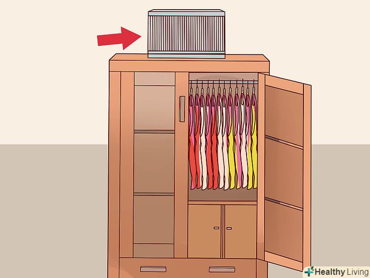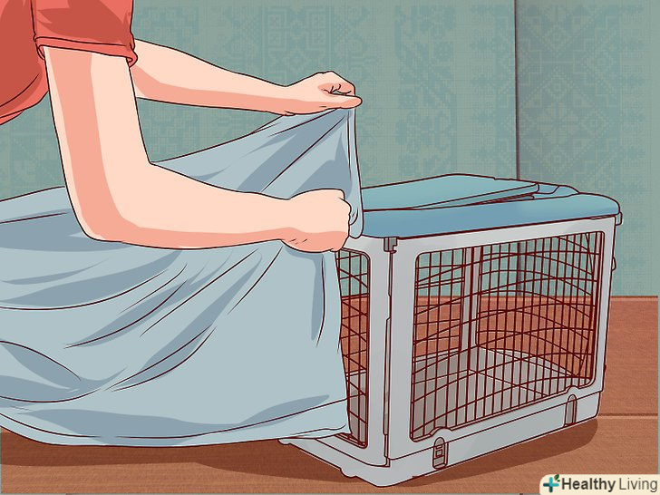 Сховайте клітку в кутку або в шафі. поставте клітку в кутку і посуньте меблі, щоб заховати її від сторонніх очей. Якщо розміри шафи дозволяють, то поставте клітку всередину. Обов'язково залиште дверцята прочиненими, щоб забезпечити приплив повітря.- Деякі тварини не люблять постійно перебувати в темряві. Залишайте клітку в світлому місці або прикріпіть до неї невелику лампочку.