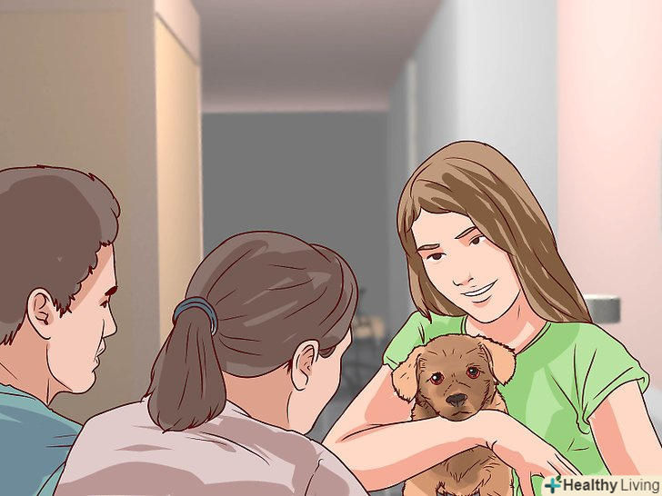 Привчіть собаку до життя в приміщенні. Часті події в будинку можуть наштовхнути батьків на думки про тварину, особливо в разі запаху або інших доказів. Спочатку собаку потрібно вигулювати кожні дві години. Навчіть пса справляти нужду в одному і тому ж місці. Пригощайте його ласощами при слухняному поведінці. [7] дуже важливо, щоб собака не справляла нужду в будинку.- Якщо пес напаскудив в приміщенні, то негайно позбудьтеся від слідів. Використовуйте засіб для дезінфекції з приємним ароматом, щоб приховати запах.