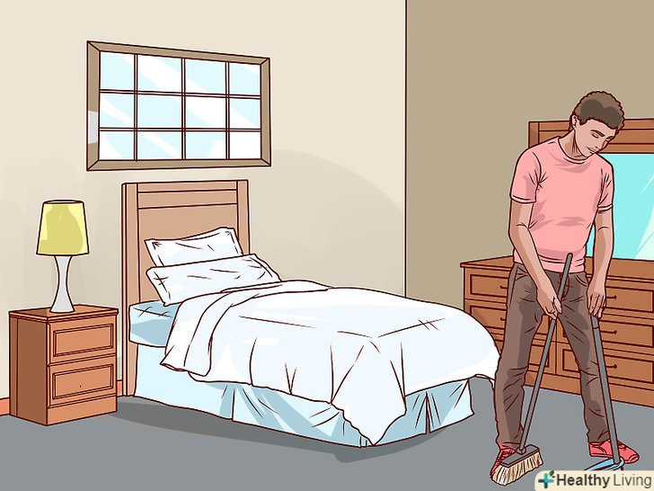 Прибирайте за вихованцем. Тварини линяють, тому шерсть може залишатися на килимі і стільцях, на дивані і одязі. Використовуйте липкий ролик. Шерсть, стружку і залишки їжі можна збирати пилососом. Прибирайте в кімнаті хоча б один раз в тиждень, щоб позбутися від пилу і продезінфікувати приміщення.- Замість ролика можна використовувати ізоляційну стрічку або скотч. Відріжте кілька сантиметрів стрічки і притисніть липкою стороною до покритої шерстю поверхні, а потім відклейте.