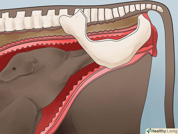 Опускання основи хвоста. тазові кістки починають розширюватися (в результаті дії гормону релаксину, як описано вище), і підстава хвоста опускається між виступами таза.