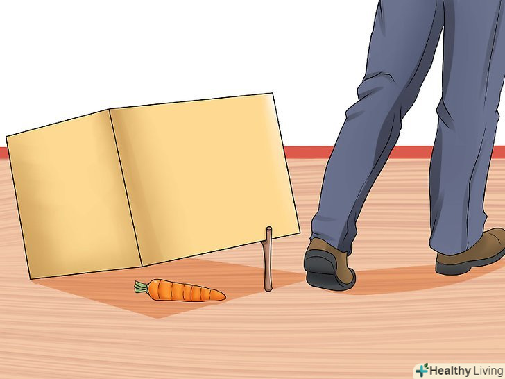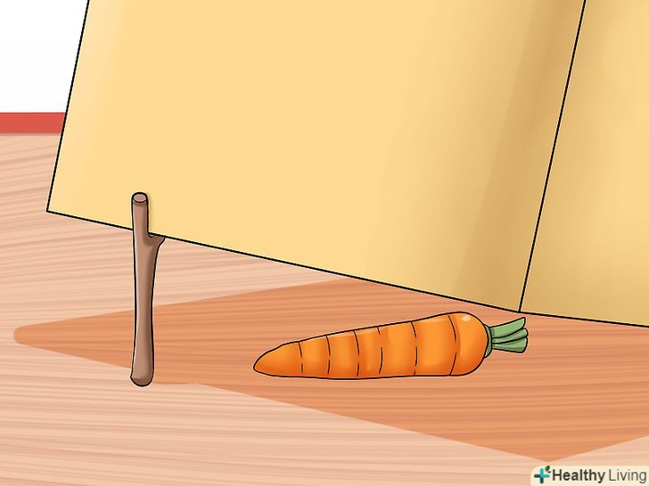 Виберіть відповідну пастку. зловити кролика можна, не торкаючись до нього руками. Цей варіант кращий, так як він не такий страшний для звірка. Для цієї мети можна обзавестися пасткою. Ви можете звернутися до місцевого товариства захисту тварин або купити пастку в магазині.- Ви також можете зробити просту пастку з картонної коробки, яка накриє кролика, коли він забереться всередину. Просто переверніть коробку догори дном, підніміть один край і підіпріть його паличкою. Виконайте в стінці коробки дірку. Візьміть мотузочку, прив'яжіть до одного кінця морква або інші ласощі і покладіть всередину коробки. Інший кінець протягніть в дірку в стінці коробки і прив'яжіть її до палички. Кролик, пробравшись в коробку, схопить частування, потягне за мотузку, висмикне паличку і коробка його накриє. [10]