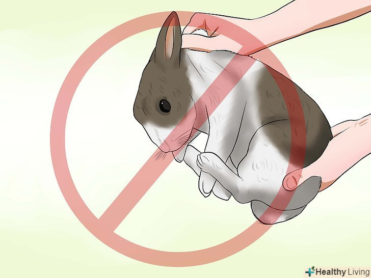 Не піднімайте кролика. якщо ви все-таки взяли кролика в руки, не піднімайте його високо в повітря — кролики живуть на землі і при цьому можуть дуже налякатися. Це також може викликати шок або Серцевий Напад. [9]- Піднімаючи кролика, ви ризикуєте серйозно пошкодити йому лапи.
