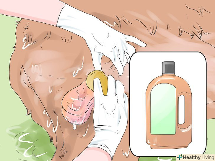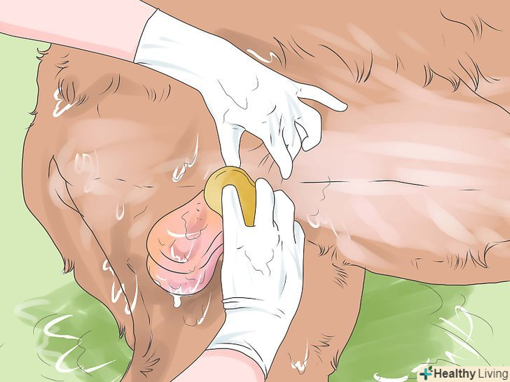 Очистіть геніталії бика або теляти за допомогою теплої мильної води. вона повинна бути чистою, без бруду та інших органічних речовин.