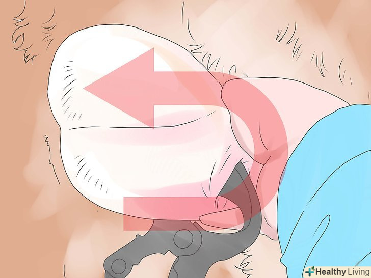 Закрийте затиск і залиште його в такому положенні близько хвилини. Пам'ятайте, що при закритті затиску його необхідно закрити так, щоб він продавив зв'язку, а не просто злегка натиснув на область.- Переконайтеся, що пеніс не входить в пошкоджені тканини.