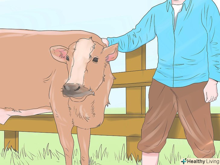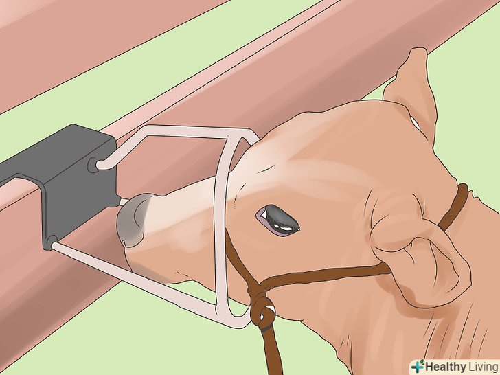 Утримуйте теля, щоб запобігти ймовірним травмам - як для вас, так і для бичка. чим молодше теля, тим простіше вам його утримати. Телят старше місяця потрібно утримувати. Проте, одна людина може легко утримувати однотижневого теляти і проробляти всі необхідні операції.- Якщо це можливо, використовуйте стіл, тому як це значно спростить роботу, яку вам необхідно зробити.