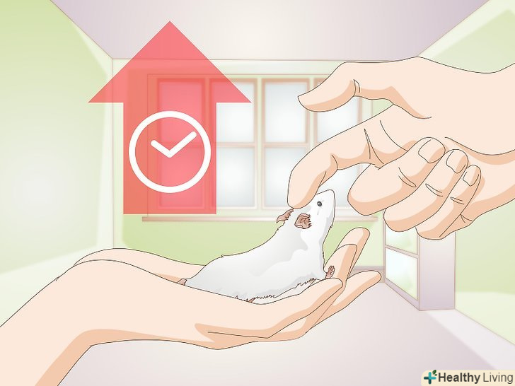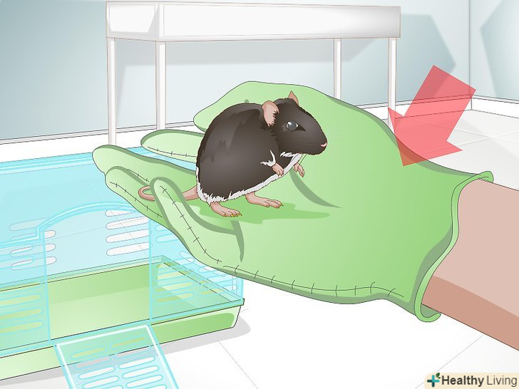 Відмовтеся від рукавичок. через 1-2 тижні спробуйте взяти мишу на руки без рукавичок. Дійте акуратно. Якщо миша злякається або вкусить вас, можна надіти рукавички і спробувати ще раз. [15]- Продовжуйте брати мишу на руки без рукавичок, поки вона не звикне і буде відчувати себе комфортно.