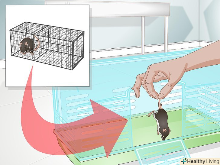 - Після того як ви зловите миша, її слід помістити в акваріум або клітку для гризунів. Не забудьте постелити зручну підстилку, покласти іграшки або інші пристосування для ігор і пляшку з водою.