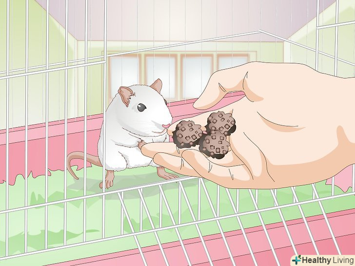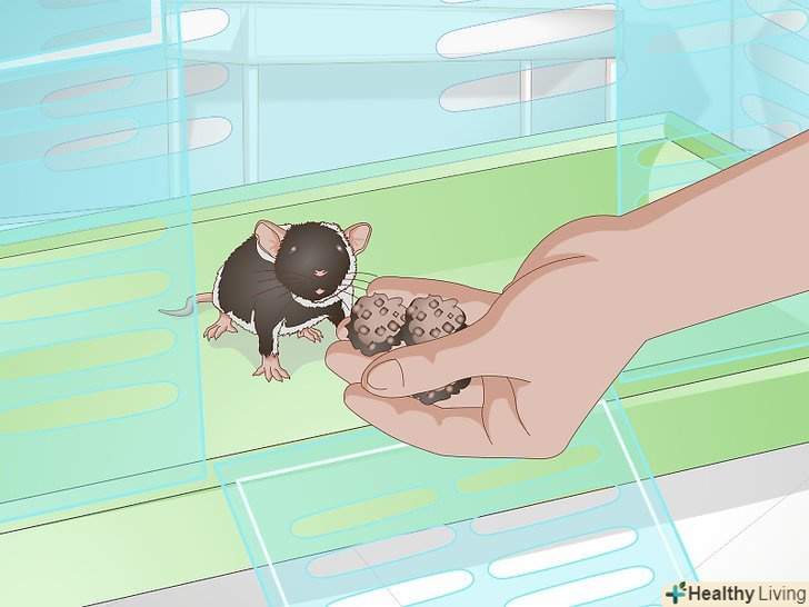 Приверніть увагу миші за допомогою ласощів. деякі вважають це хитрим «підкупом». Проте таким чином ви дасте миші знати, що не уявляєте для неї загрози і можете запропонувати їй дещо корисне. [13]- Покладіть ласощі на долоню і опустіть її в клітку. Зачекайте, поки миша наблизиться до долоні і візьме корм.