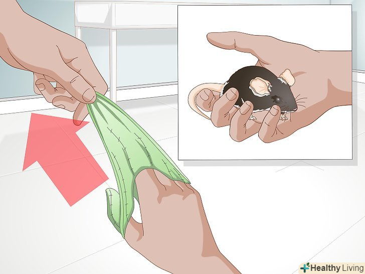 Беріть мишу на руки в рукавичках. для цього добре підійдуть садові рукавиці. Обережно підведіть під мишу долоню і дістаньте її з клітки. Потримайте тварина кілька хвилин і дайте йому полазити по вас. Після цього обережно опустіть мишу назад в клітку. [14]- Поки миша лазить по вас, запропонуйте їй ласощі. В результаті вона почне асоціювати вас з чимось приємним.