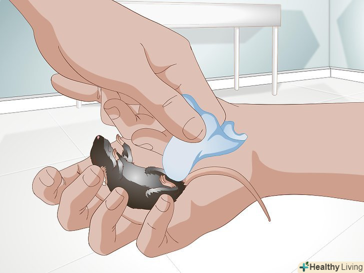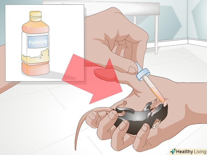 Лікуйте діарею. у мишенят часто буває діарея, причому вона може представляти серйозну проблему. В результаті мишенята можуть померти від зневоднення. На щастя, діарею у мишенят можна вилікувати за допомогою відпускаються без рецепта засобів, які підходять і для людей. Якщо ви будете доглядати за мишеням подібним чином, він ще більш прив'яжеться до вас. [4]- Для підтримки водного балансу і лікування діареї у мишенят прекрасно підходить «регідрон». Давайте його мишеняті за допомогою піпетки.