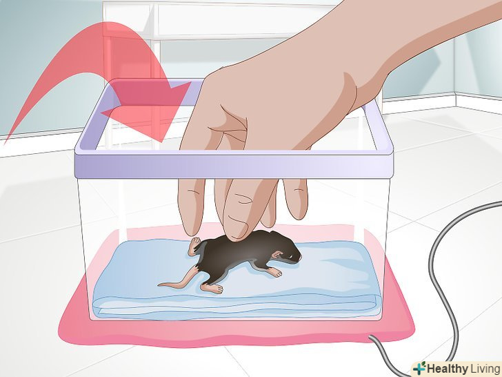 - Для мишеняти добре підійде застелений рушником пластиковий контейнер для транспортування домашніх тварин. Покладіть під рушник пляшку з гарячою водою або електричну грілку (виставте на ній мінімальну температуру).