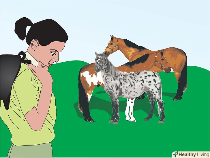 Виберіть масть. забарвлення не так важливий, якщо ви не збираєтеся брати участь у виставках. Робочі характеристики важливіше, ніж забарвлення. Незважаючи на це, всі власники коней, як правило, вибирають вподобану масть. Одні вважають за краще плямистих, іншим подобаються каштанові або гніді, а деякі вважають за краще аппалузьких або буланих. Яку б масть ви не воліли, спробуйте пошукати породу, в якій буває той окрас, який вам подобається. При виборі коня, темперамент і здоров'я завжди стоять на першому місці; забарвлення повинен бути вторинний. Однак якщо вам не подобається забарвлення коня, є велика ймовірність, що ви не підійдете до коня тієї масті. Якщо комусь не подобається аппалуза, вони не підуть поруч з нею, теж саме з будь-яким іншим забарвленням. Справжні любителі коней не вибирають масть, але вибирають забарвлення на вибір. Це не єдиний колір, який їм подобається, а кольори, які вони найбільше віддають перевагу.