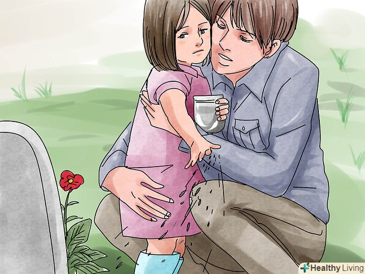 Контролюйте власні емоції в присутності дитини. Пам'ятайте про те, що плакати при дитині допустимо, але намагайтеся не дозволяти власним емоціям виходити з-під контролю. Наприклад, не ридайте на очах у дитини. Це може його налякати або ще сильніше засмутити. Обов'язково постарайтеся піти, якщо відчуваєте, що почуття починають вас переповнювати. [8]