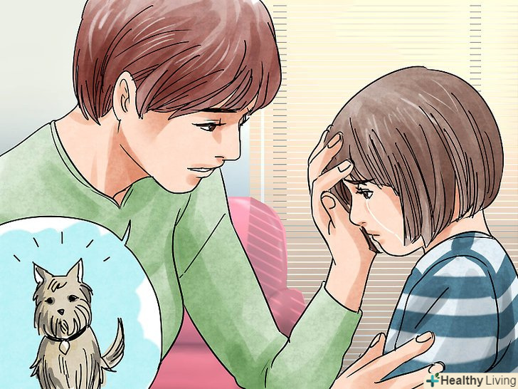 Звертайте увагу на ознаки того, що дитина бореться з власним горем. у деяких ситуаціях дітям буває досить важко відпустити дуже улюбленого вихованця. В такому випадку найкращим варіантом може виявитися допомога професійного психолога. Наприклад, можна попросити про зустріч шкільного психолога або ж записатися до дитячого психотерапевта. До ознак того, що дитина страждає від горя, відносять: [9]- Постійну печаль;
