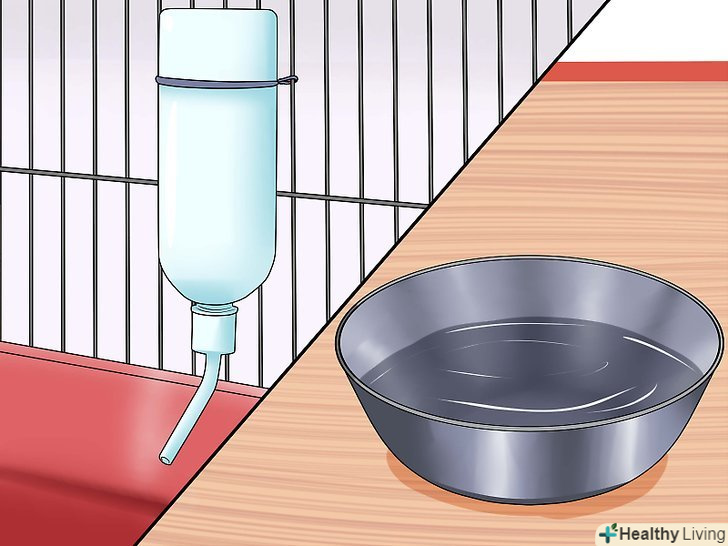 Придбайте поїлку або миску для води. нерідко клітини для кроликів вже забезпечені поїлкою, проте, буде непогано мати відразу кілька поїлок. Для кролика, звичайно, зручніше пити з миски, але він легко може її перекинути, на відміну від поїлки. [7]- Поїлки можуть не сподобатися вашому кролику. Якщо ви помітите його роздратування через необхідність користуватися поїлкою, перейдіть до використання важкої керамічної миски для води.