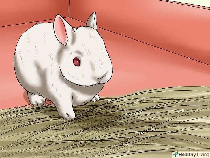 Давайте кролику багато сіна. сіно в утриманні кроликів володіє універсальними функціями. Воно служить підстилкою, кормом і розвагою для кролика, його навіть можна використовувати в якості наповнювача туалетного лотка. При цьому дуже важливо, щоб сіно було хорошої якості. Для більшості кроликів найкраще використовувати сіно тимофіївки. [8]- Коли кролик вживає сіно, воно забезпечує його травну систему клітковиною, яка необхідна для її нормальної роботи.