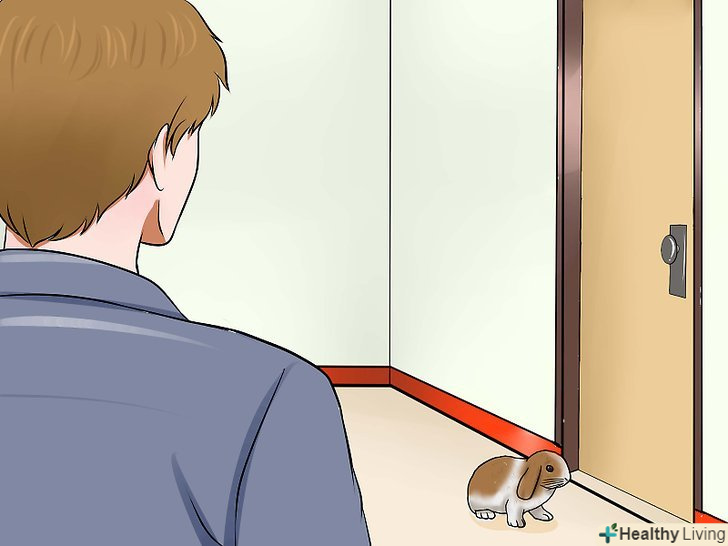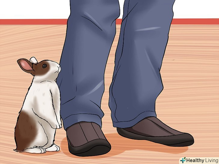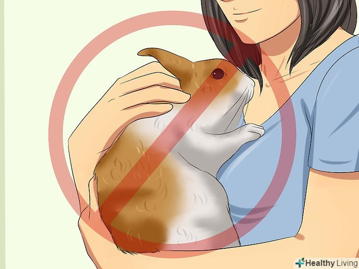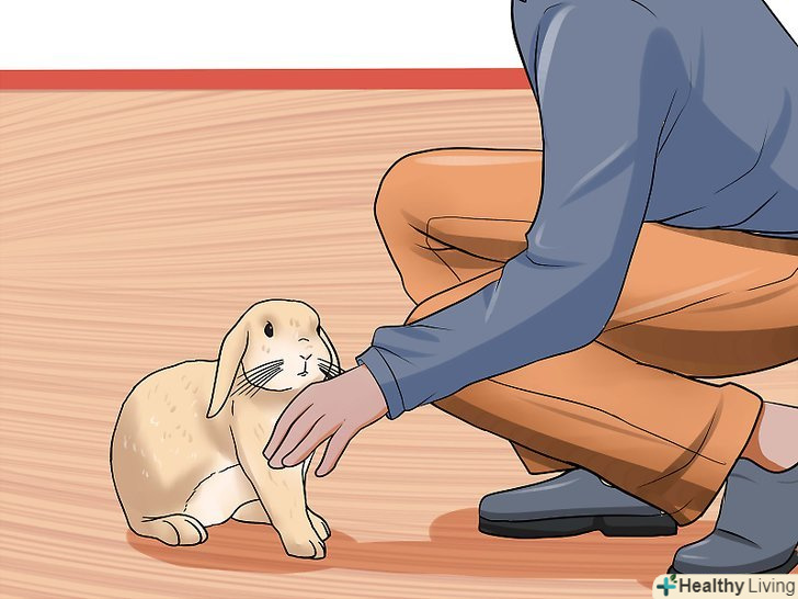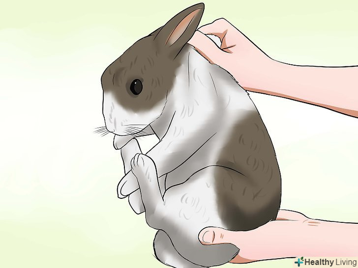 Правильно беріть кролика на руки. коли ви будете готові придбати кролика, навчіть всіх членів сім'ї тому, як правильно брати його в руки. Щоб правильно взяти кролика, підхопите його знизу уздовж всього тіла однією рукою, а другою рукою підтримайте його задню частину. Коли підніміть кролика вгору, піднесіть його до власного боку для забезпечення додаткової підтримки. [24]- У стані страху кролики можуть чинити опір. Вони можуть спробувати вирватися з уявного їм небезпечним становища. Якщо ви будете неправильно брати кролика в руки, він може сам собі випадково зламати спину, що нерідко призводить до фатального паралічу.