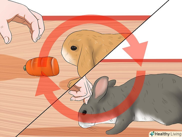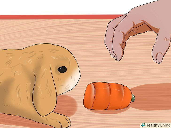 Забезпечте кролика джерелами розваги. як і інші домашні тварини, кролики потребують іграшок. Придбайте для кролика різноманітні іграшки, наприклад, ті, які можна гризти, або розгалужені тунелі. Ви навіть самі можете виготовити іграшки для кролика, наприклад, з картонних коробок з отворами відповідного розміру, щоб кролик міг в них пройти. [11]- Відмінною саморобної іграшкою для сточування зубів може стати необроблена гілка яблуні. Перш ніж давати гілку кролику, переконайтеся в тому, що вона чиста і не оброблена ні чим шкідливим для кролика.