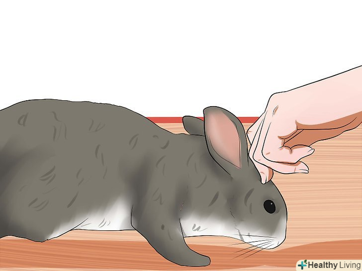 Постарайтеся не тискати зайвий раз кролика. незважаючи на зовнішню привабливість цих чарівних пухнастих кульок, кролики не люблять, коли їх занадто часто беруть на руки і обіймають. Вони, швидше за все, схильні побоюватися обіймів, особливо якщо ви будете нависати своїм тілом над ними при спробі взяти на руки. Так як в природі кролики є об'єктом полювання хижаків, подібні дії з Вашого боку будуть інстинктивно нагадувати вихованцеві напад орлів та інших хижих птахів, через що він може злякатися. [26]- Дуже малій кількості кроликів подобається, коли їх гладять тривалий час, проте, багато кроликів будуть раді нетривалим погладжуванням. Іноді кролик може навіть вщипнути вас зубами, щоб Ви припинили його гладити.
