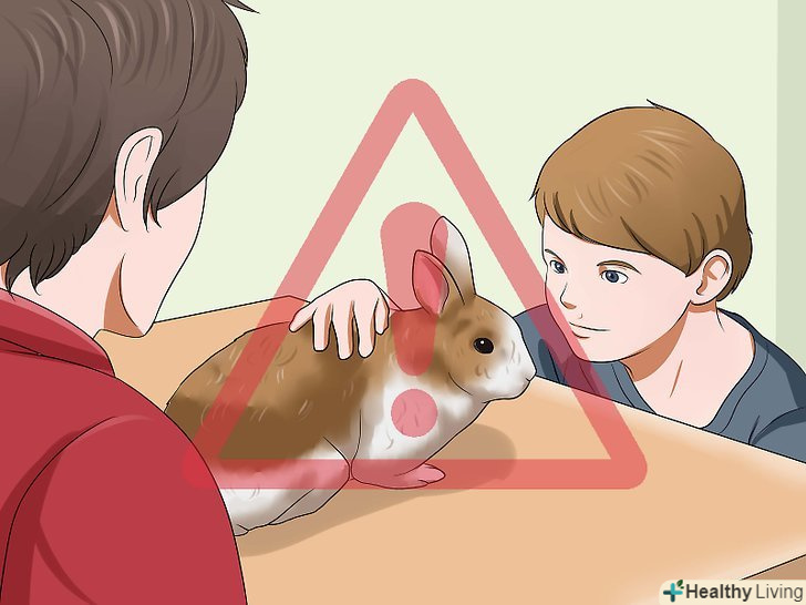 Навчіть дітей правильному поводженню з кроликом. діти, особливо гіперактивні, можуть дуже сильно налякати кролика. Кролику буде здаватися, що на нього нападає хижак, якщо поруч з ним почне кричати і верещати маленька дитина. Ніколи не дозволяйте дитині ганятися за кроликом по дому або намагатися після цього взяти його на руки. Через отриманого