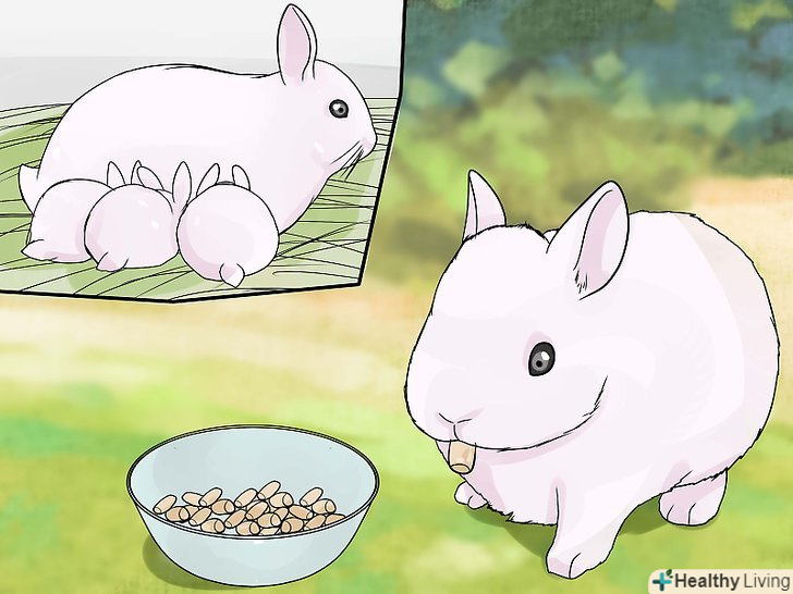 Забезпечте вагітної кролиці якісне харчування. дієта вагітної або годуючої кролиці не буде сильно відрізнятися від звичайного харчування, але важливо подбати про використання високоякісних кормів. Перевірте інформацію на пачці корму і переконайтеся в тому, що:- Білки складають 16-18%;