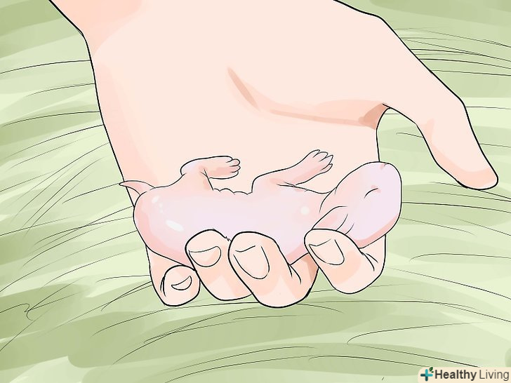 Перевірте стан народжених кроленят. вагітність у кроликів триває приблизно 31-33 дні. [9] кролиця не потребує допомоги під час пологів, які зазвичай відбуваються вночі або рано вранці. Це означає, що цілком ймовірно, одного ранку ви прокинетеся і виявите поява приплоду. Негайно перевірте стан всіх кроленят, щоб переконатися, чи немає серед них загиблих при народженні. Щоб забезпечити собі доступ до гніздового ящика і отримати можливість видалити мертвих кроленят, кролицю можна відвернути ласощами.- Також з гніздового ящика слід прибрати послід.