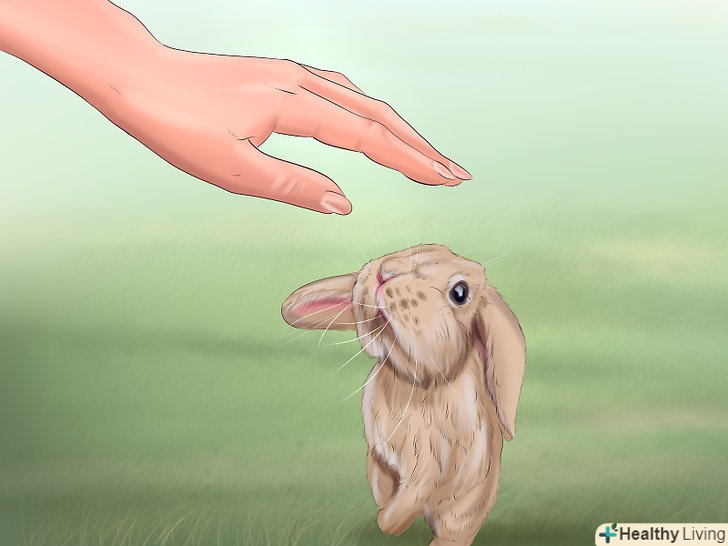 - Витягніть руку, щоб кролик нюхав її. Якщо кролик ще не звик до вас, йому потрібно спочатку вивчити, як ви виглядаєте, пахнете і які звуки видаєте. Можливо, після цього він дозволить вам брати себе на руки. [36]