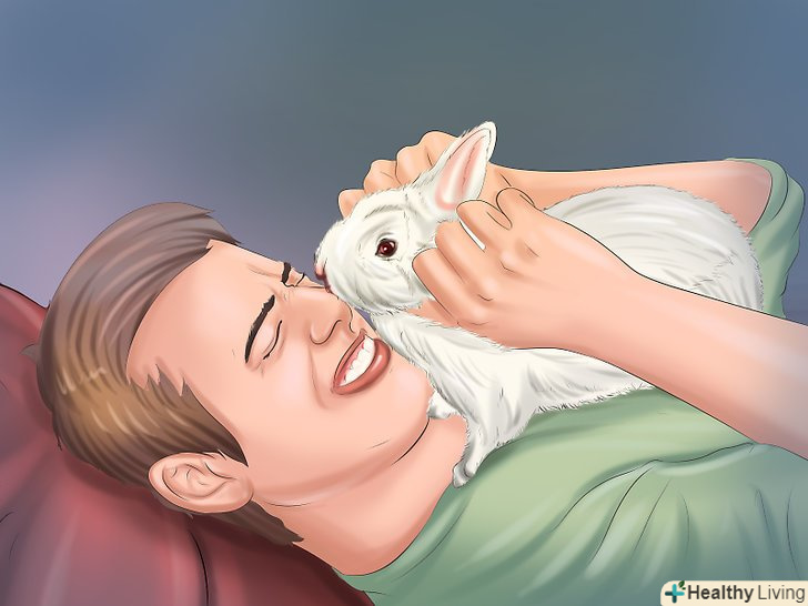 - Якщо у кролика відкривається нижню повіку (в кутку ока), коли ви берете його на руки, це означає, що він боїться або нервує. Якщо кролик так реагує на ваші дотики, краще не брати кролика на руки (як мінімум до тих пір, поки він не навчиться вам довіряти). [14]