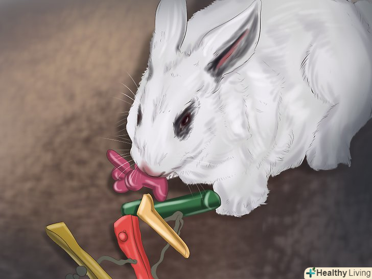 Давайте кролику іграшки. Кролики люблять грати. Можна купити спеціальні іграшки для кроликів або зробити їх самостійно.- Кролики люблять іграшки, які можна гризти, ховати, заривати. Можна використовувати картонні коробки, але можна також купити або зробити більш складні іграшки. [26]