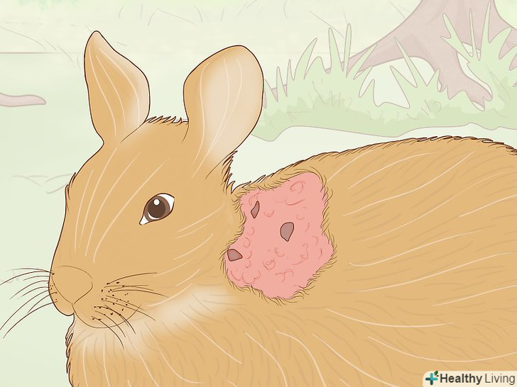 Огляньте кролика, щоб встановити характер травми. догляд буде залежати від типу травми. Якщо травма не несе прямої загрози життю тварини (тобто у кролика немає сильної кровотечі, він не паралізований і не оглушений), огляньте кролика: [3]- Ніс і вуса — вони повинні виглядати однаково з обох сторін. Пошукайте ознаки виділень і набрякання.