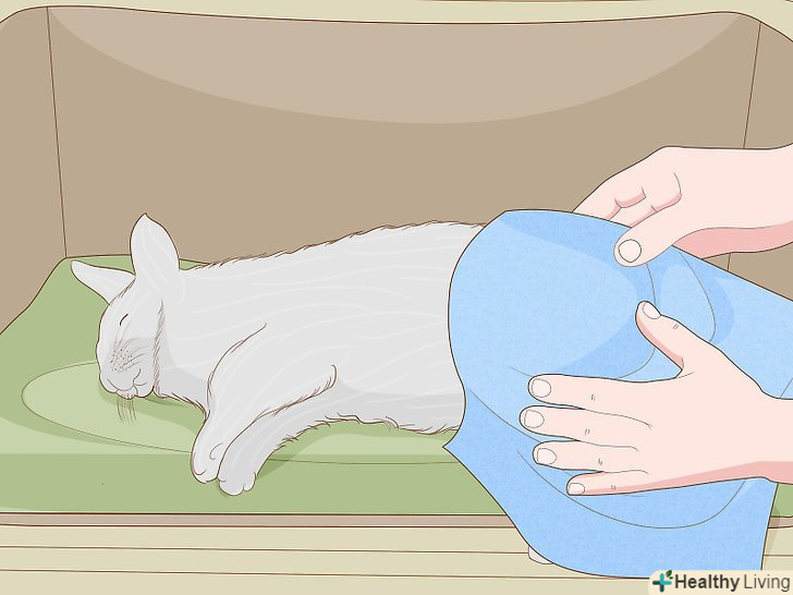 Загорніть кролика в рушник, якщо не знайдете причину травми. через травму тіло кролика швидко остигає. Якщо ви вважаєте, що кролик був травмований, особливо якщо його штовхнули, наступили на нього або сіли, акуратно загорніть його в рушник і відвезіть до ветеринара.- Щоб кролик менше нервував, влаштуйте для нього темне укриття. Від сильного стресу кролик може померти, тому поки ви займаєтеся Його ранами або чекаєте новин від ветеринара, влаштуйте йому темний куточок.