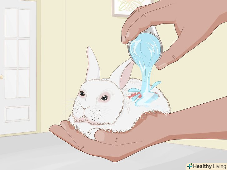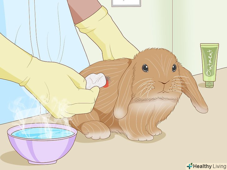 Промийте опіки прохолодною водою. якщо на кролика потрапила гаряча рідина або хімічна речовина, потримайте опік під проточною прохолодною водою не менше 10 хвилин. Зробіть це до поїздки до ветеринара, оскільки це допоможе зменшити наслідки опіку. [8]- Не наносьте на рану мазь — це ускладнить роботу ветеринара.